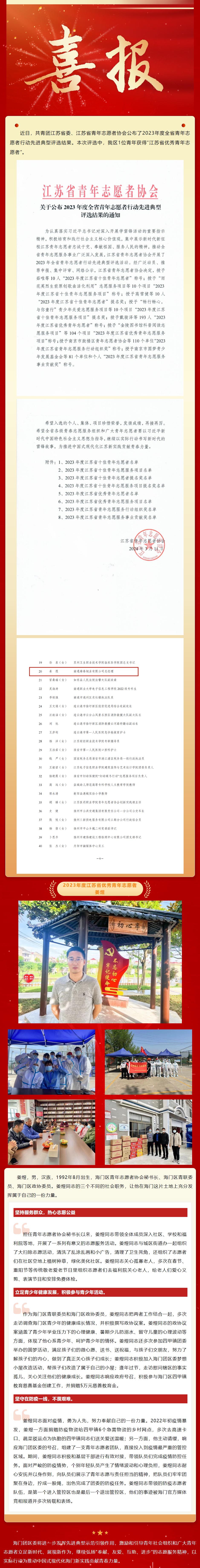 2024年3月,總經(jīng)理姜煜榮獲“2023年度江蘇省優(yōu)秀青年志愿者”。
